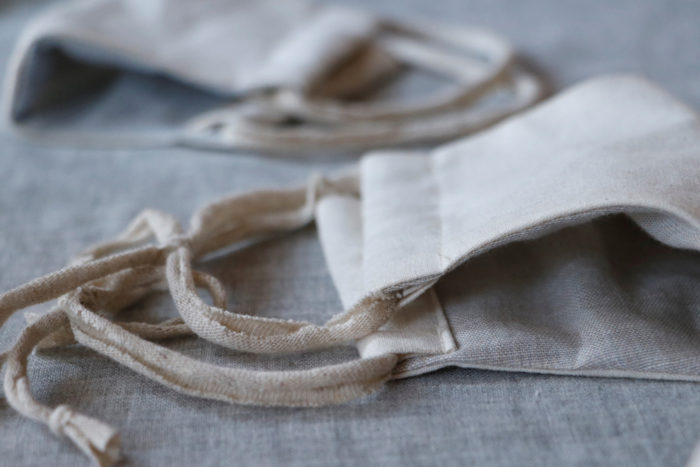 コットンリネンのひもでナチュラル感たっぷりに仕上がりました。