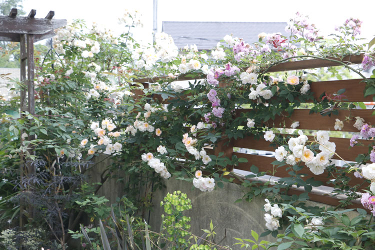 ほわっほわっ。 トレジャーとロープ満開でございます。 バラとクレマチスの共演お期待していたのだけど おしい! あとちょっと・・・ ちょっとなんだけどなぁ 間に合わないかなぁ。 残念ながらつぼみのままのクレマチス。